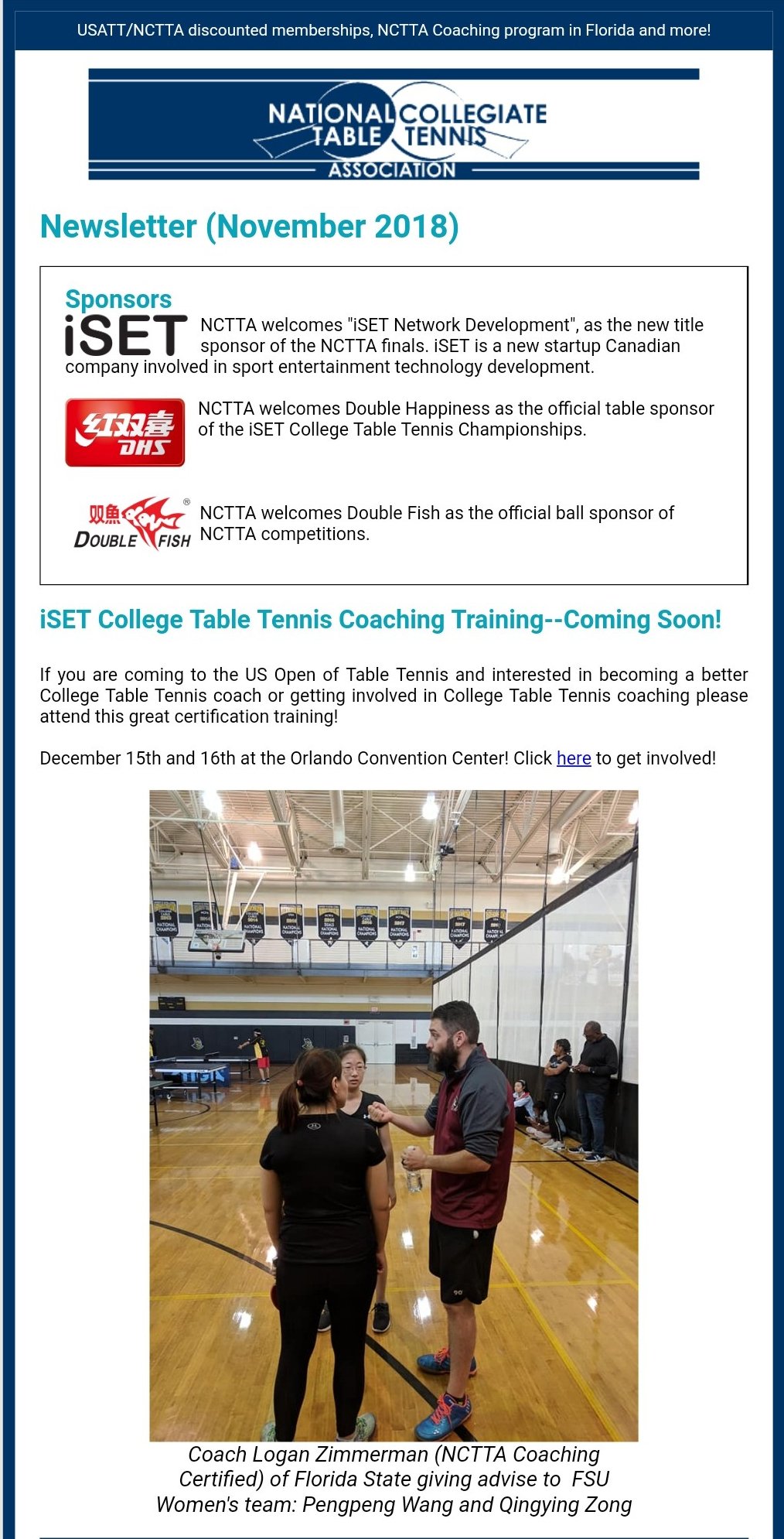 - Currently on NCTTA coaching board developing next tier of coaching certification (2018 – Present)